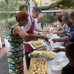Στις εγκαταστάσεις προσφέρεται επίσης ιταλικό πρωϊνό. Στο εστιατόριο προσφέρονται πιάτα Italiaanse. Οι κοντινές επιλογές για φαγητό περιλαμβάνουν το Frontemare Ristorante & Musica, που απέχει 200 μέτρα από το Fabius.